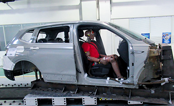滑臺(tái)碰撞室成立于2008年,承擔(dān)著法規(guī)強(qiáng)檢、出口認(rèn)證、約束系統(tǒng)匹配、C-NCAP鞭打試驗(yàn)、整車兒童乘員保護(hù)試驗(yàn)等多項(xiàng)工作。試驗(yàn)室總長(zhǎng)135米,寬24米,占地3200余平米,擁有兩臺(tái)三菱重工加速式模擬碰撞臺(tái)車,截至2021年底共完成各類臺(tái)車碰撞試驗(yàn)28000余次。